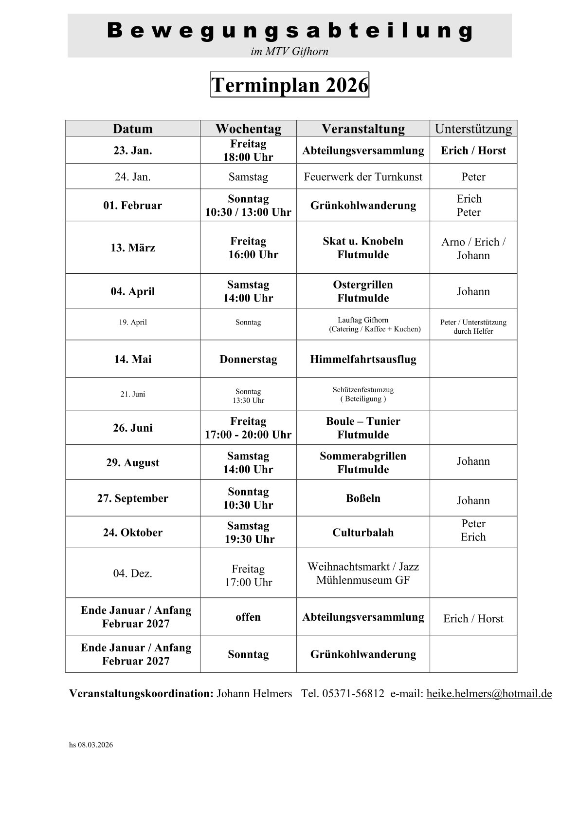 Die aktuellen Veranstaltungen entnehmt bitte dem Terminplan 2026!