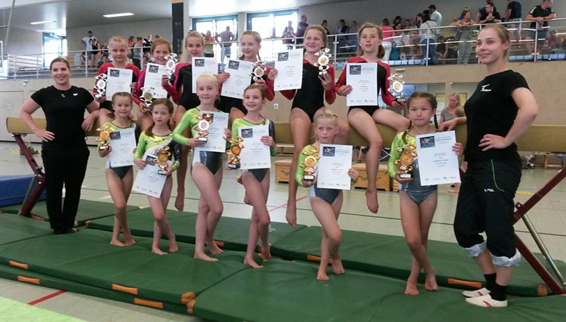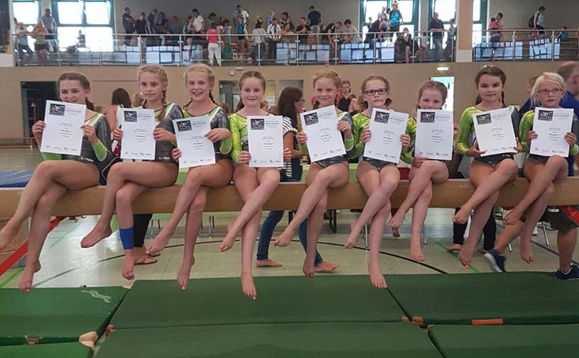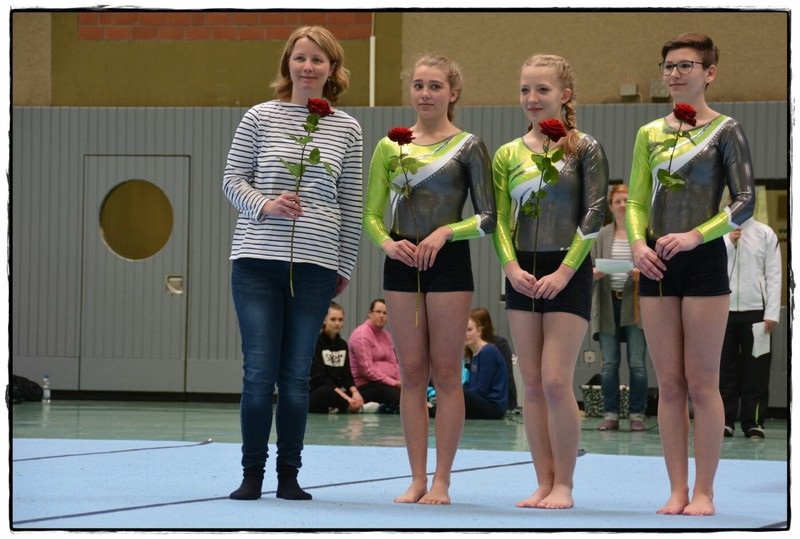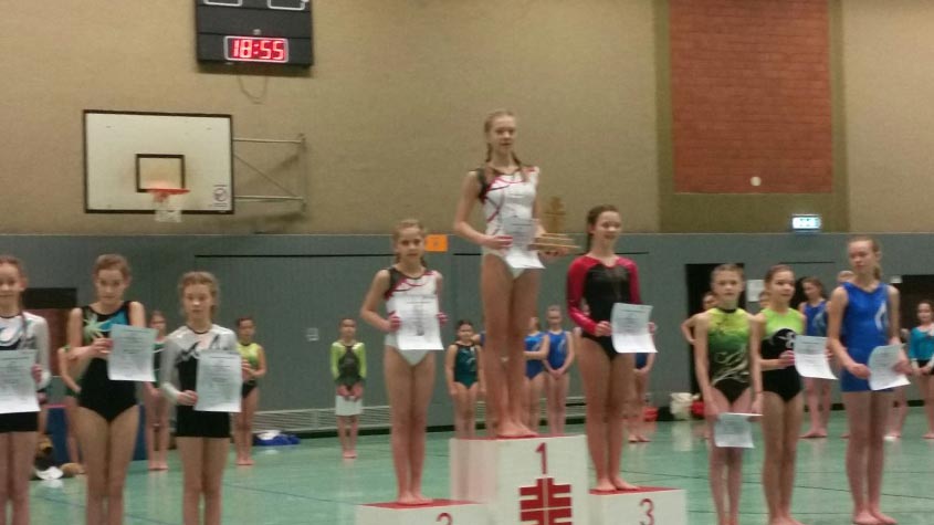 Am Sonntag Nachmittag konnten wir noch einmal voll auftrumpfen. Malou konnte ihren Titel als Kreismeisterin aus dem Vorjahr auch in der höheren Pflichtstufe behalten. Lina und Jule zeigten sehr sicher ihr Leistungsvermögen vorturnen und sicherten sich damit in ihren Wettkämpfen jeweils den 3. Platz. Henrica stürzte leider einmal vom Balken, ansonsten wäre auch für sie, aufgrund ihrer tollen Übungen an den anderen Geräten, ein Podestplatz möglich gewesen.