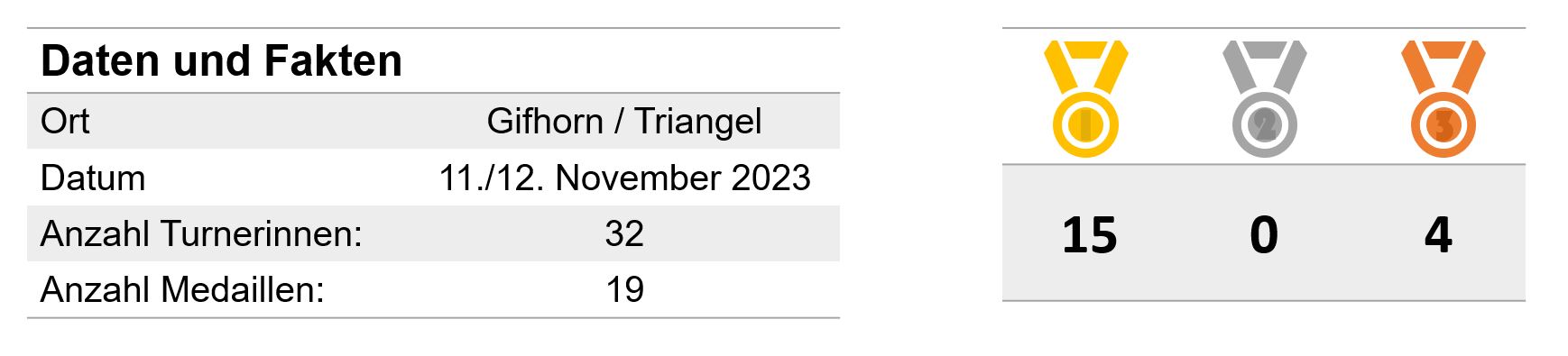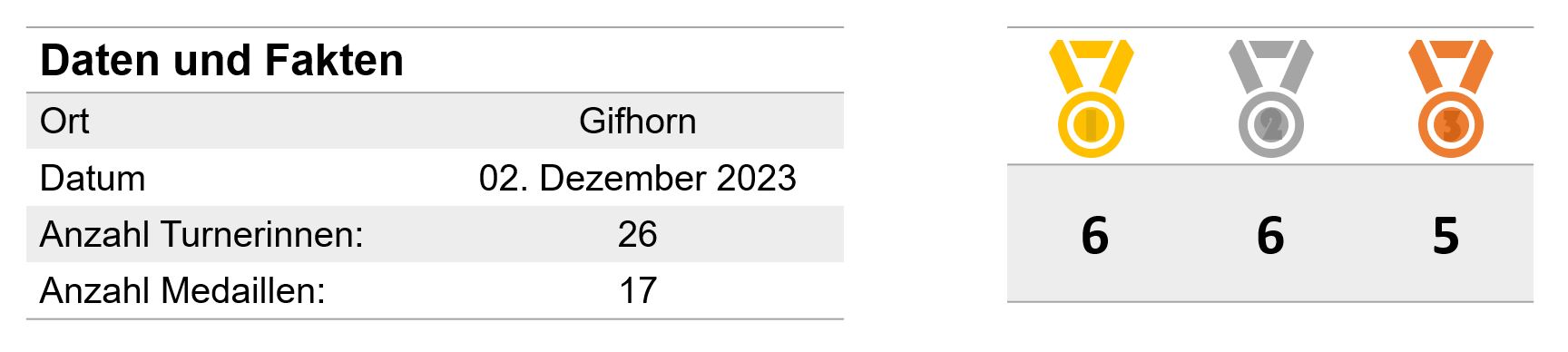 Am 18.03.2023 fand in Kästorf das Bezirksfinale der P-Stufen statt. Für den MTV Gifhorn haben sich Leila, Annabelle und Ann qualifiziert.