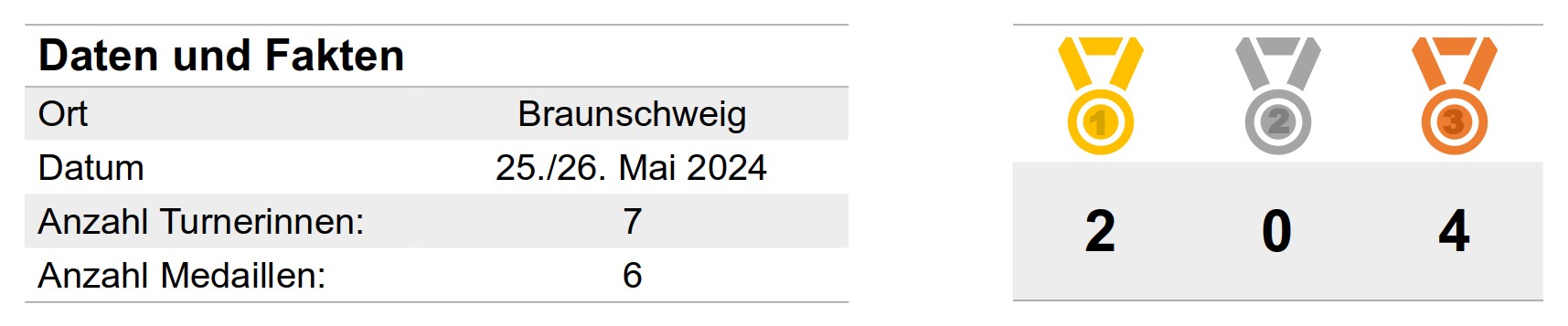 Am 12.03.2023 fand in Einbeck der Bezirkswettkampf der LK 3 statt. Hannah L. startete als einzige Teilnehmerin für den MTV Gifhorn. Begleitet wurde sie von ihren Trainerinnen Daniela R. und Emily sowie von ihren Turnfreundinnen Tamira und Julia zur Unterstützung. Franka ermöglichte durch ihren Kampfrichtereinsatz die Teilnahme am Wettkampf.