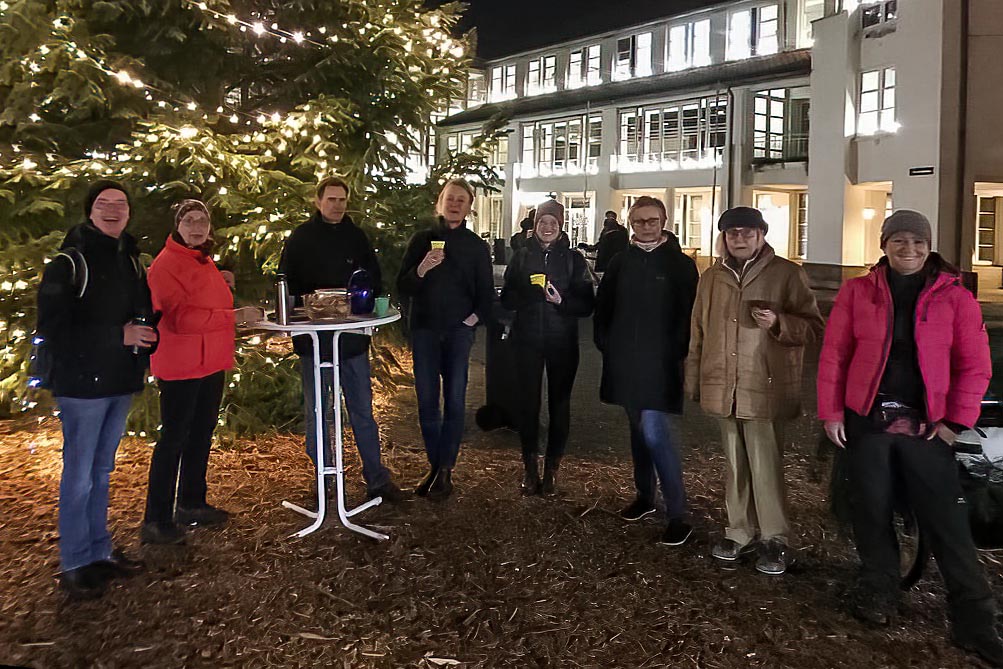 Nach einem schönen Marsch durch die weihnachtlich beleuchtete Fußgängerzone ein weiterer Zwischenstopp auf dem Marktplatz. Hier gab es die heißen Getränke, die sich jeder mitgebracht hatte und süße Schmankerln.