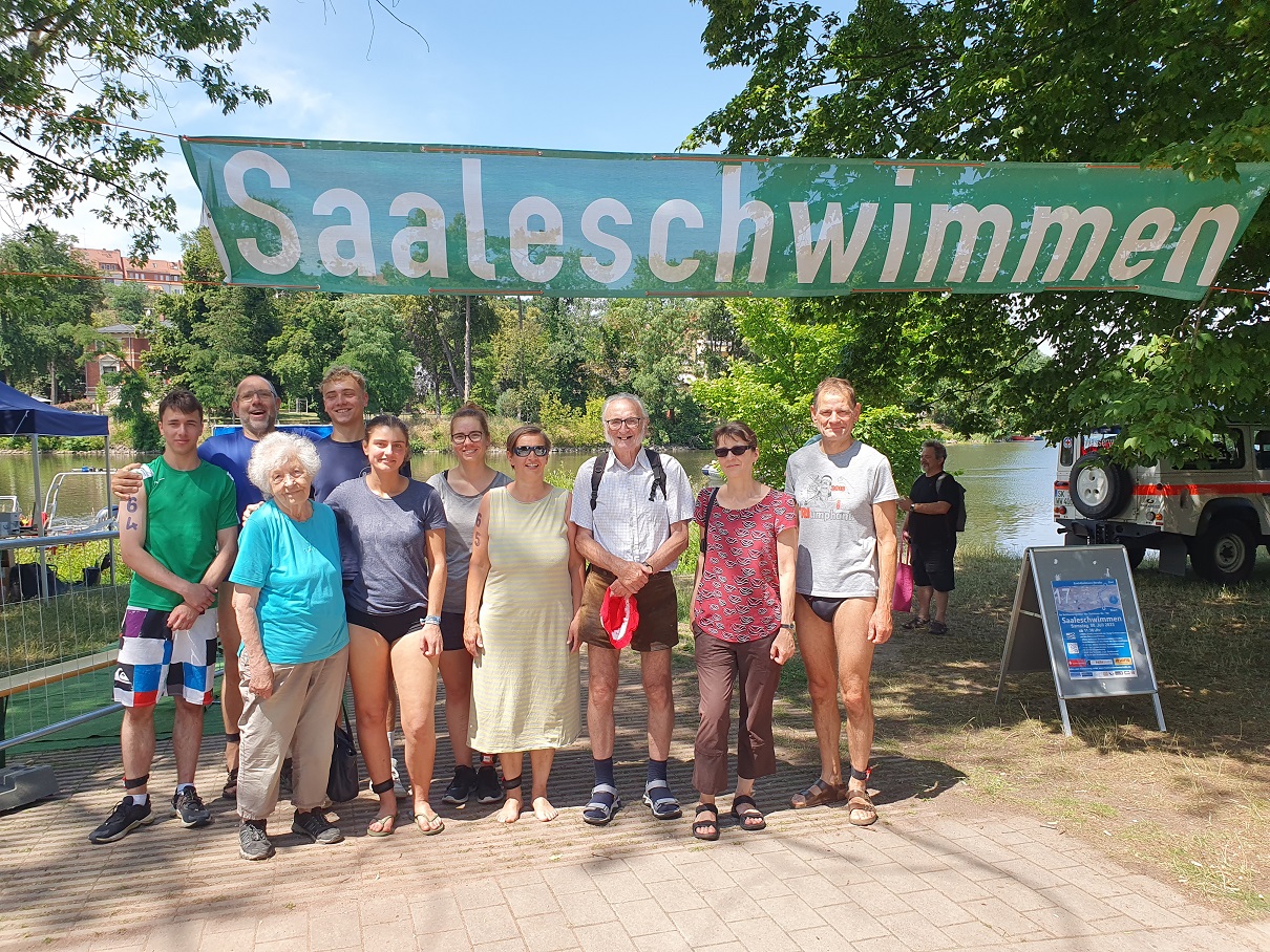 Nach einer verletzungsbedingten Pause in 2022 hatte ich mir für 2023 wieder den Start an drei Freiwasserschwimmen vorgenommen. Dieses Mal ging es am 8. Juli mit dem Saaleschwimmen in Halle los. Dort sind wir als Familie bereits Stammgast. Und alle sieben mitschwimmenden Familienmitglieder haben sich dieses Mal für die lange Strecke über 2 km entschieden. Dabei ziehe ich vor den anderen sechs wirklich meinen Hut, da sie nur gelegentlich schwimmen gehen.