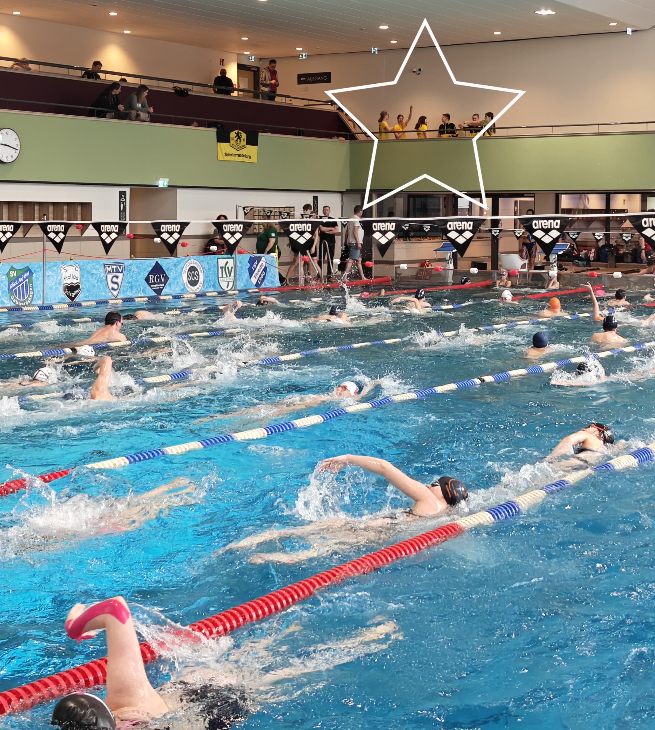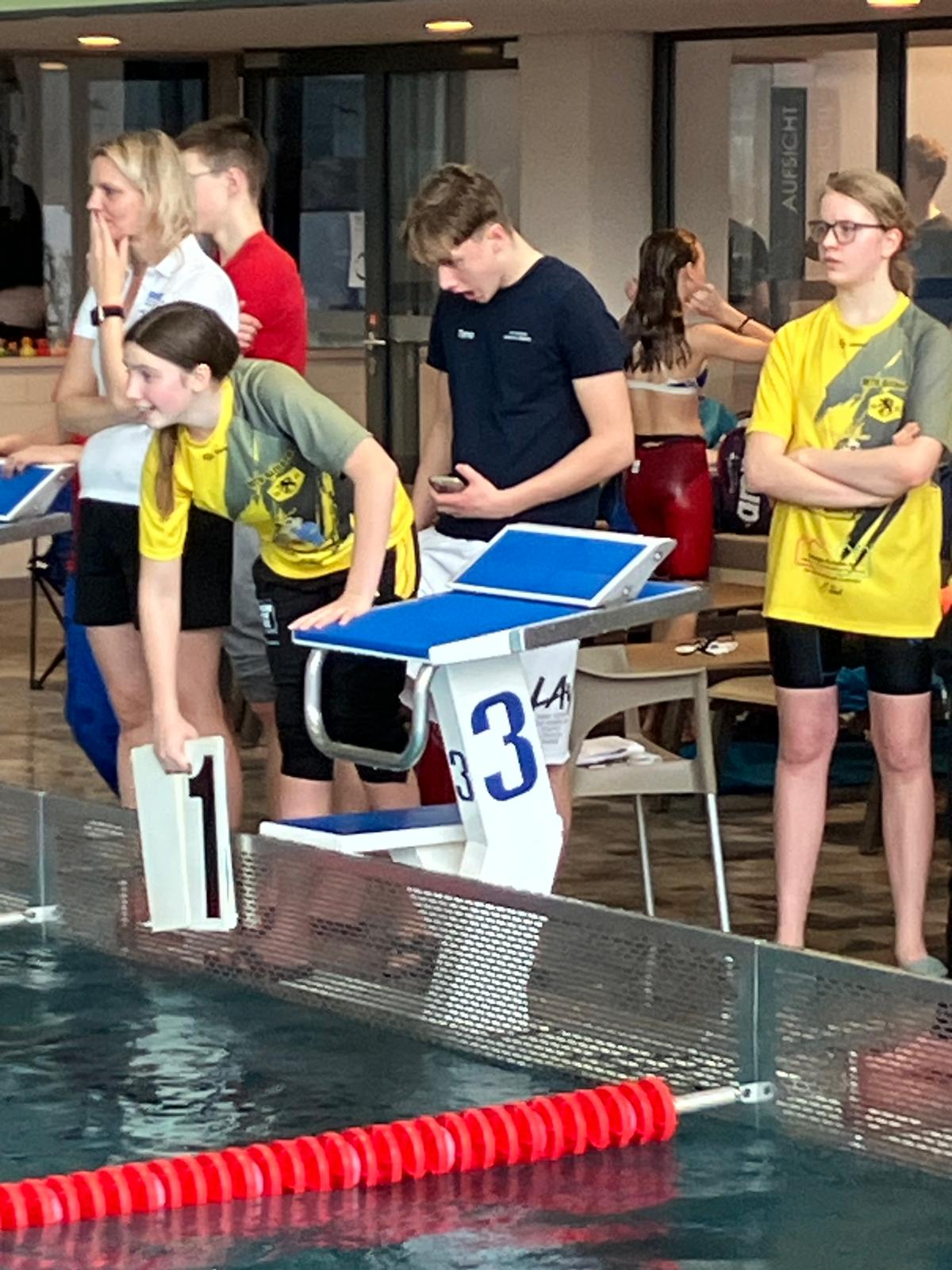 Klaus und Olaf hielten die Fahne der Masters hoch: Klaus holte Gold in 800m und 1.500m Freistil während Olaf in 400m Lagen und 1500m Freistil voll durchzog und sich ebenfalls jeweils eine Goldmedaille sicherte. Zwischen seinen beiden Wettkämpfen war er sogar noch als Kampfrichter für die 800m Freistil im Einsatz und zu guter Letzt sorgte er dafür, dass Trainer und Kampfrichter sicher nach Salzgitter und zurück in die Heimat transportiert wurden! Top!! Bei den Jüngeren waren es Maximilian Brocke und Kilian Knösel, die für ihre Leistung in 800m Freistil bzw. 1.500m Freistil mit einer Bronzemedaille belohnt wurden.