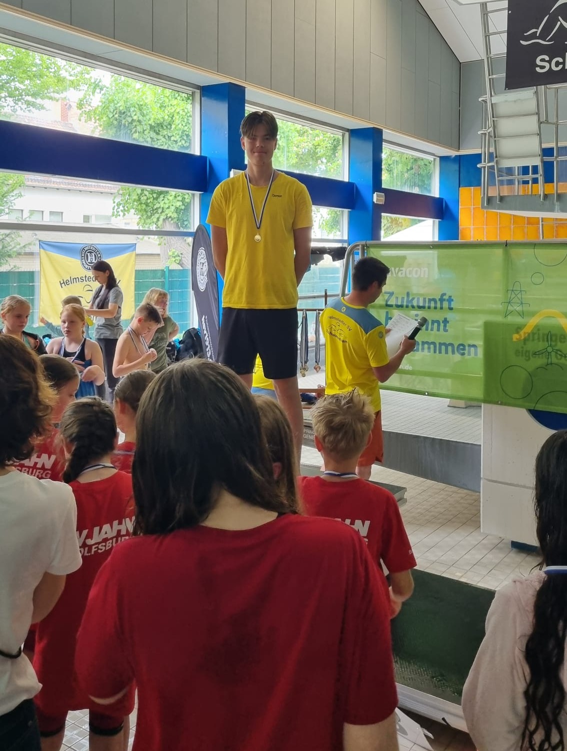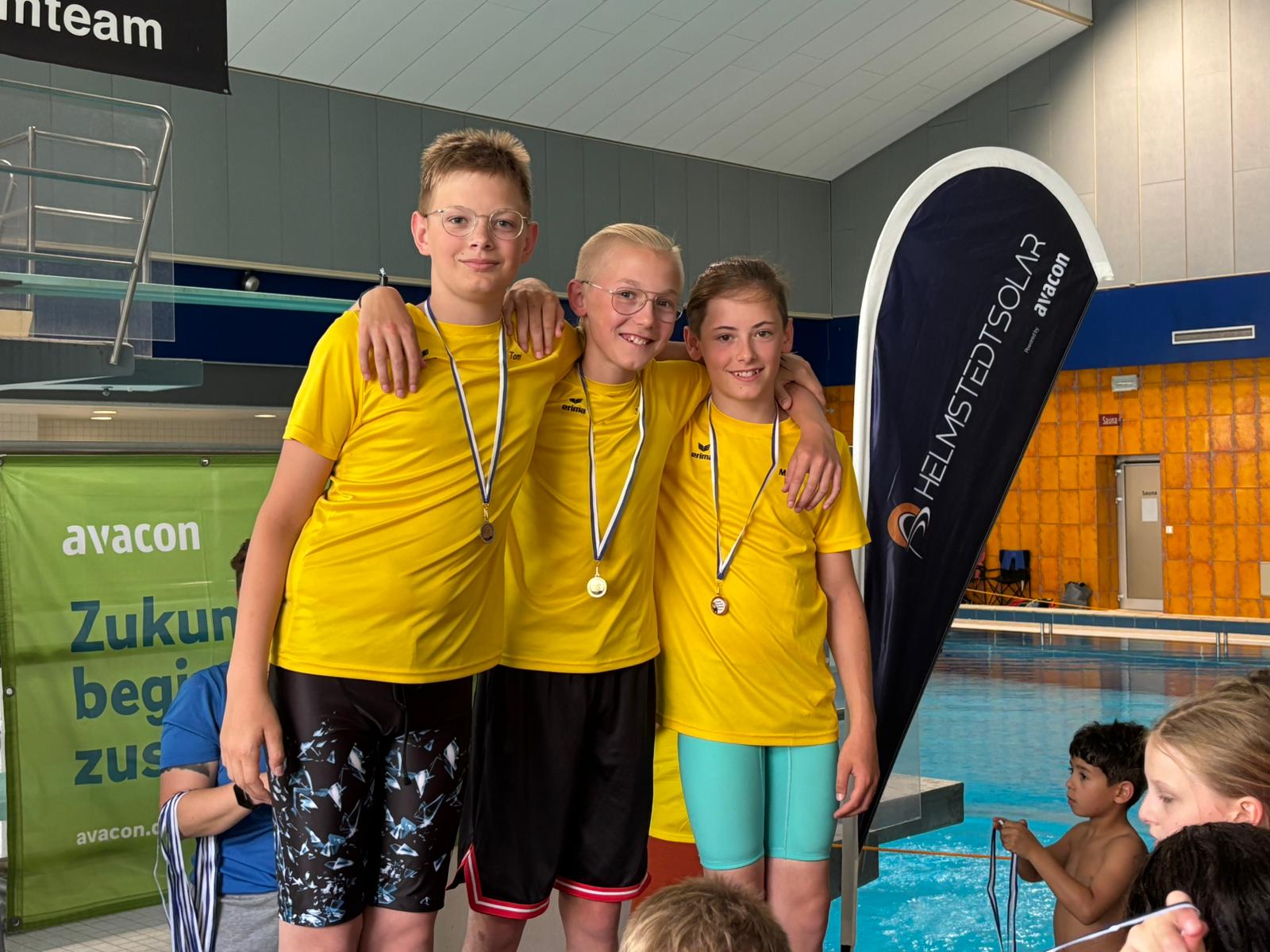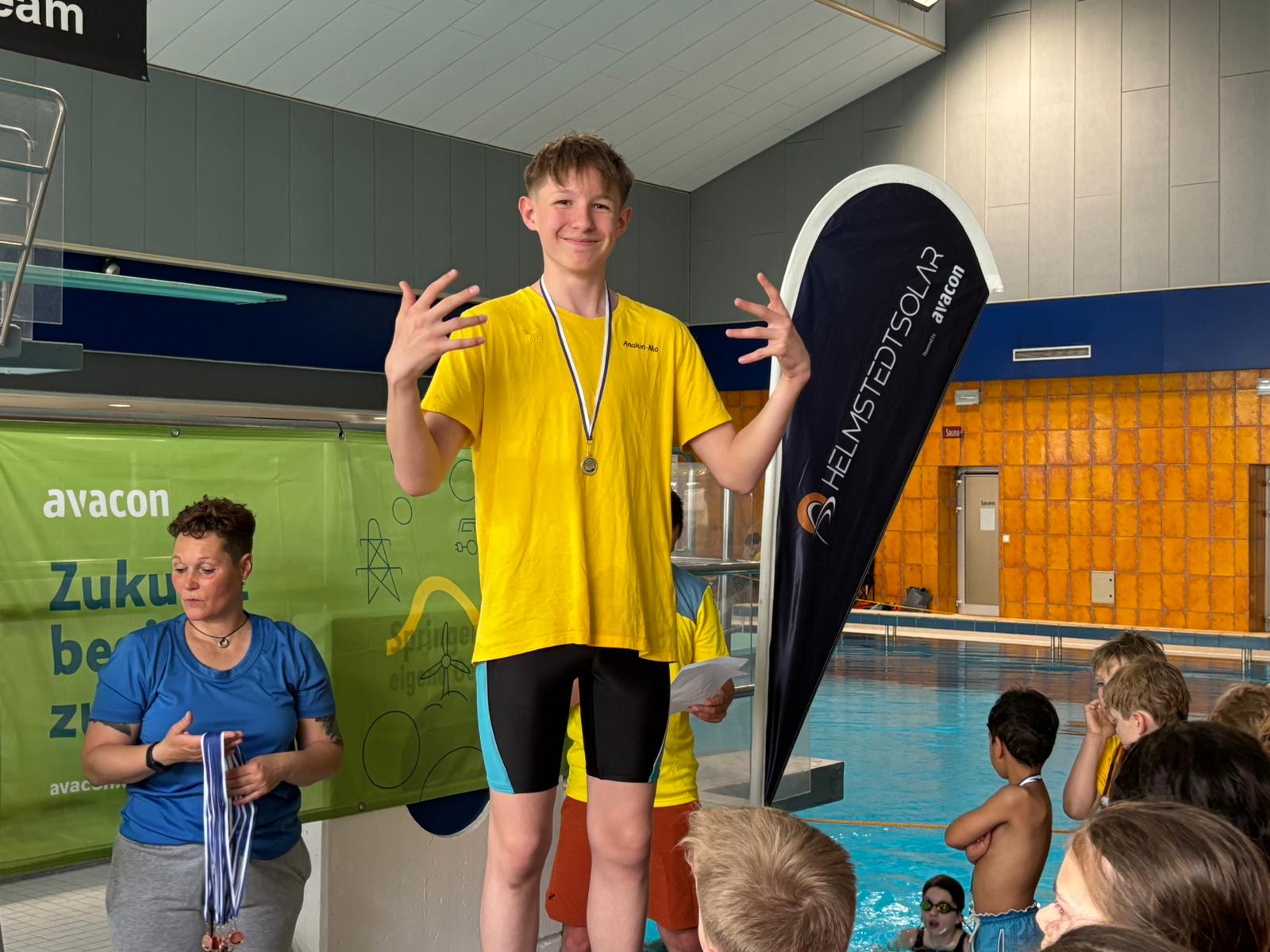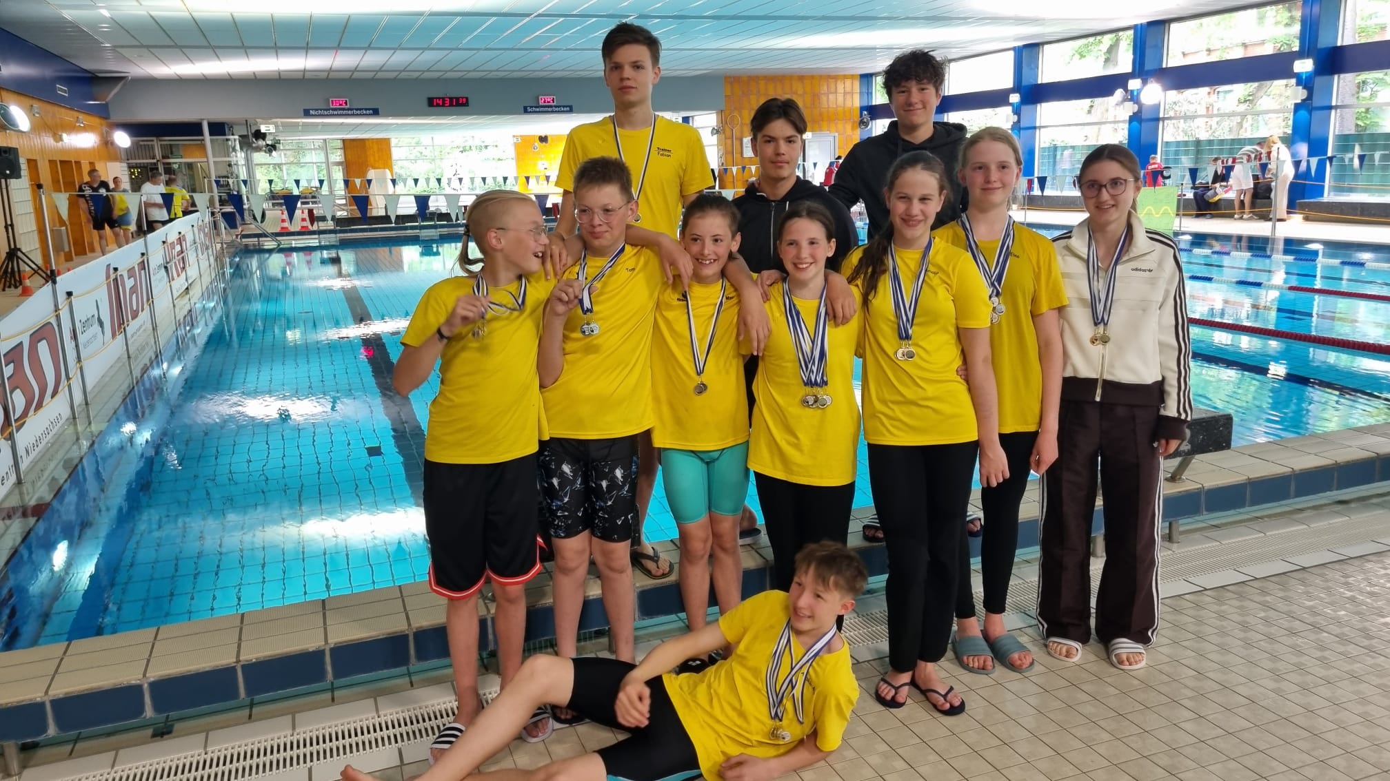 Die Liste des Triumphs geht weiter: Maxi, Tom, Kilian, Domas, Darii, ... keiner blieb ohne Medaille. Selbst Trainer Fabian fischte eine goldene aus dem Becken.