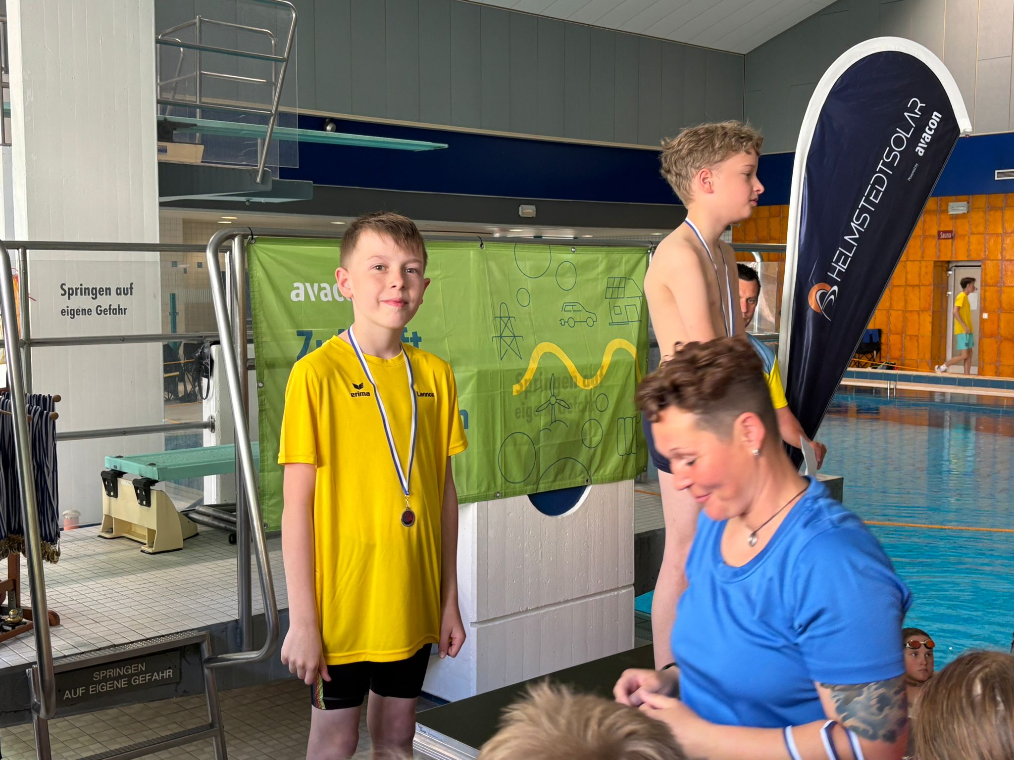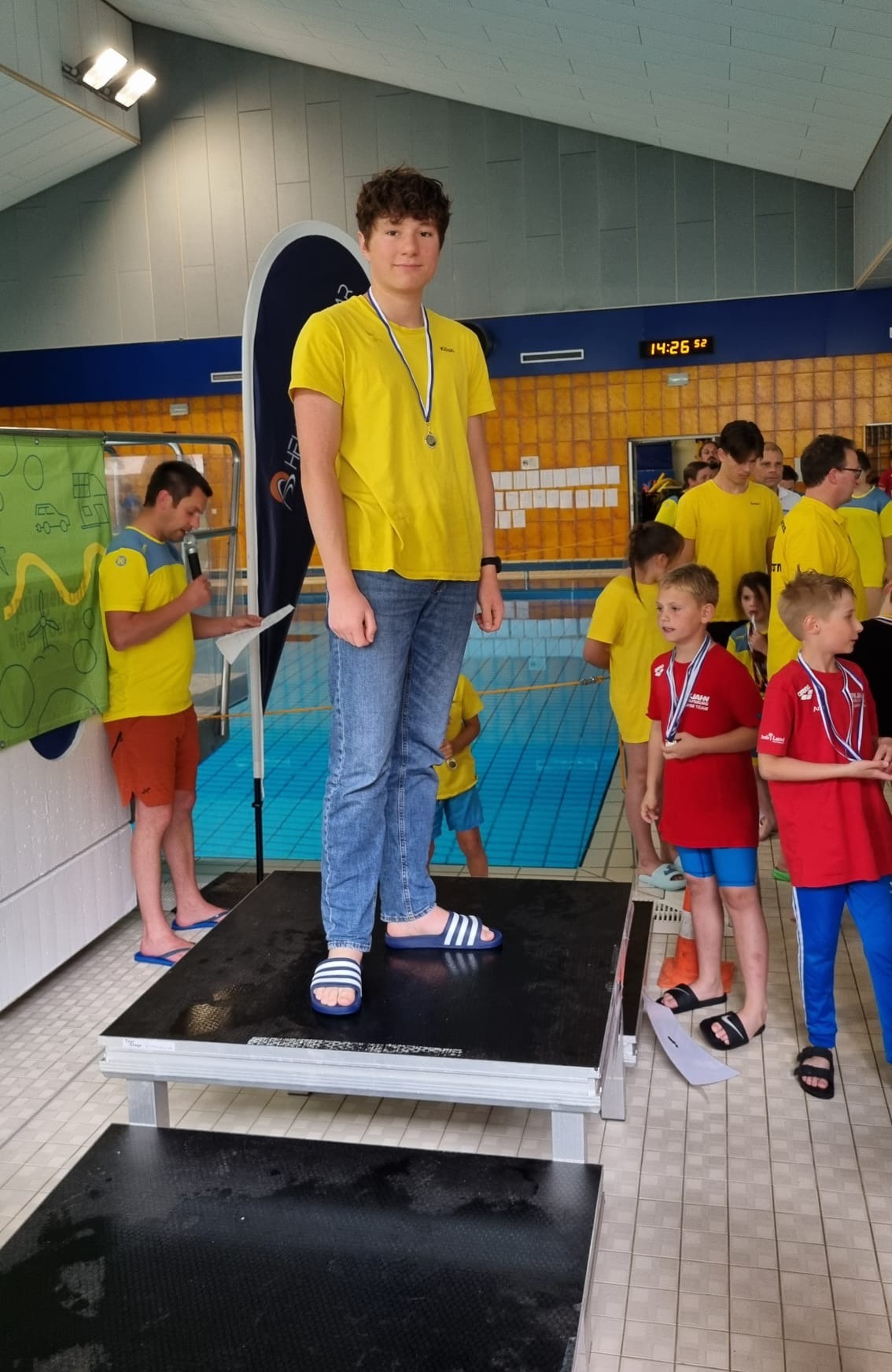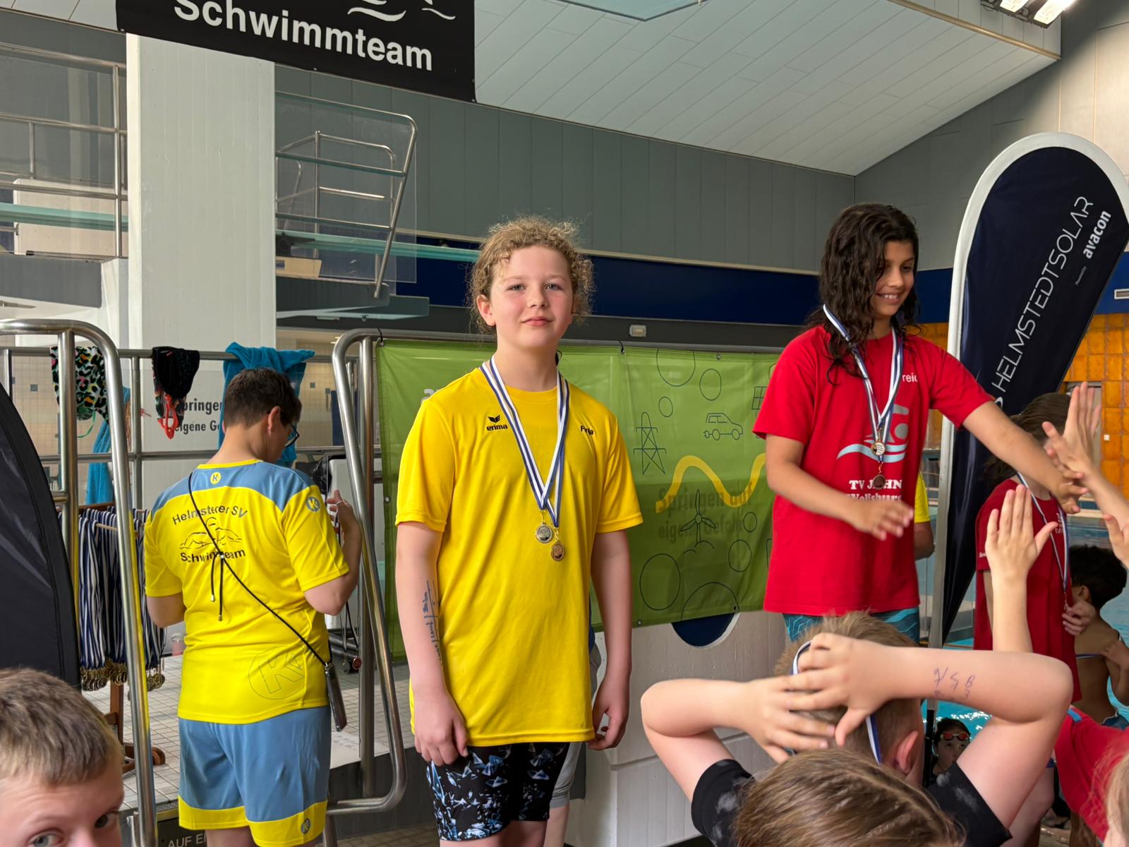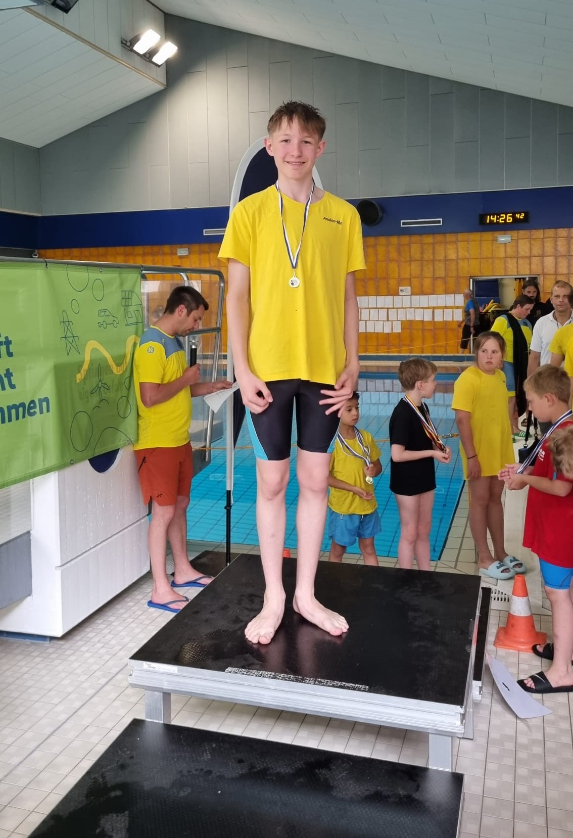 Die Liste des Triumphs geht weiter: Maxi, Tom, Kilian, Domas, Darii, ... keiner blieb ohne Medaille. Selbst Trainer Fabian fischte eine goldene aus dem Becken.
