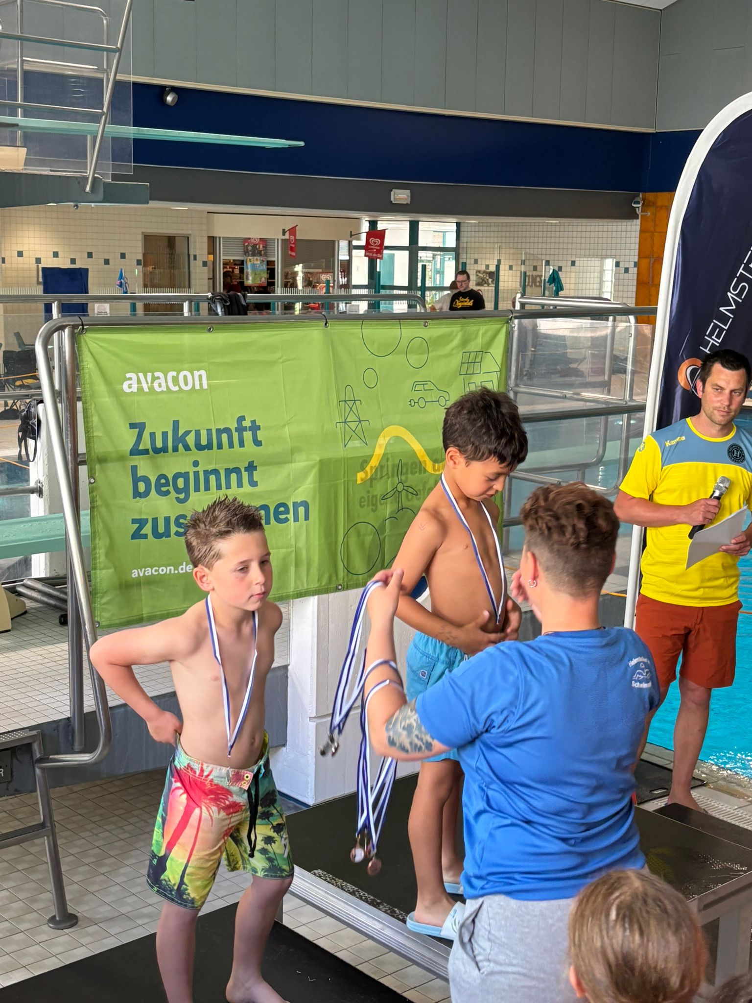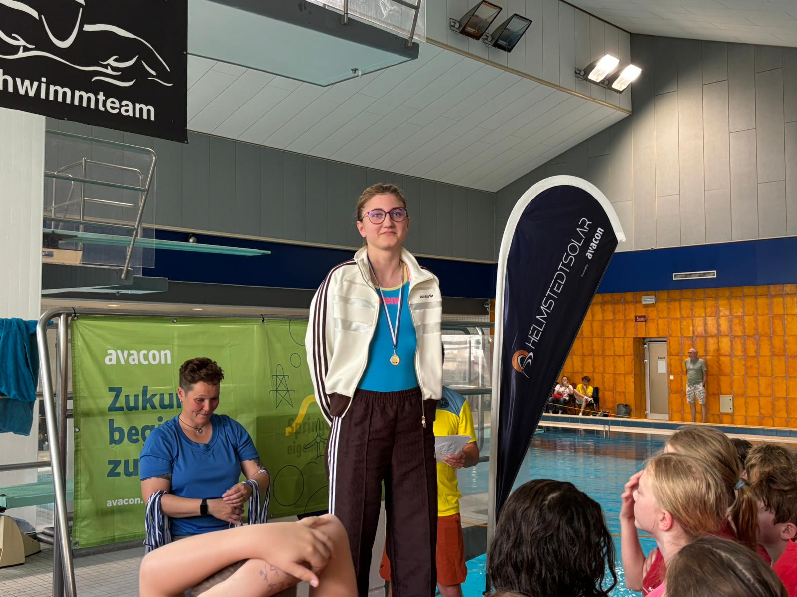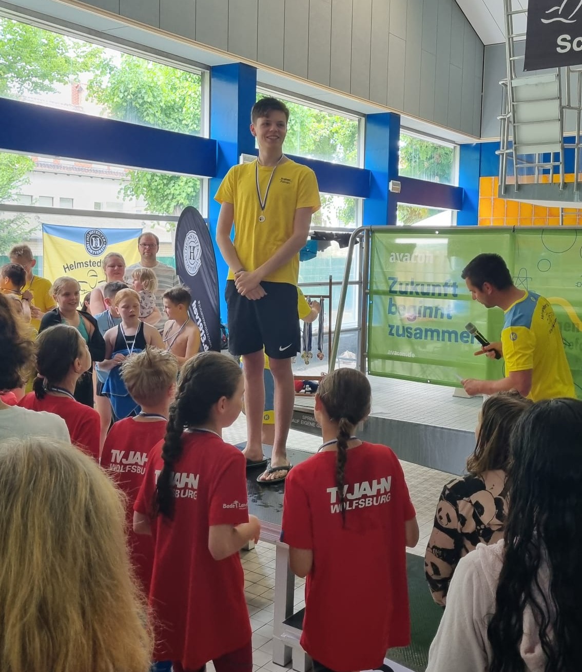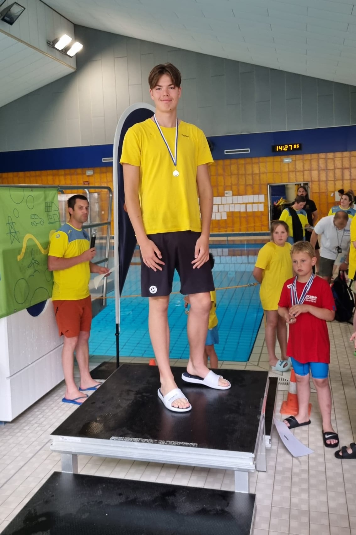 Die Liste des Triumphs geht weiter: Maxi, Tom, Kilian, Domas, Darii, ... keiner blieb ohne Medaille. Selbst Trainer Fabian fischte eine goldene aus dem Becken.