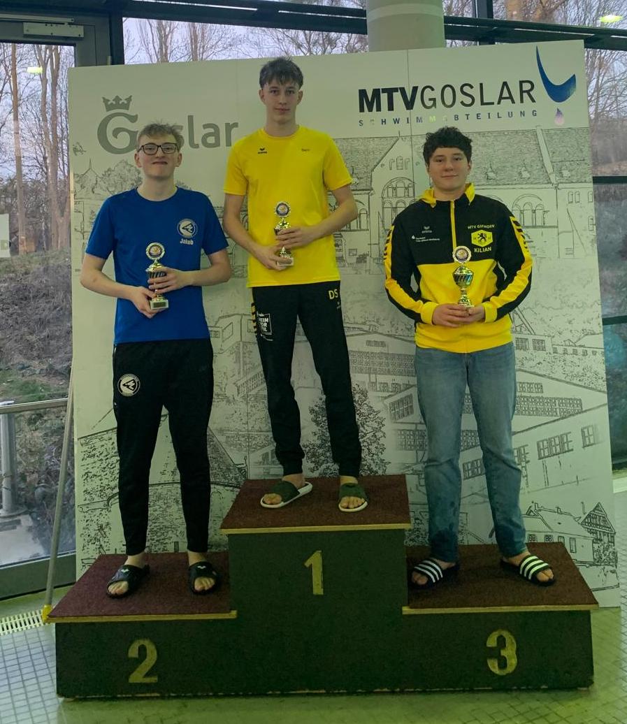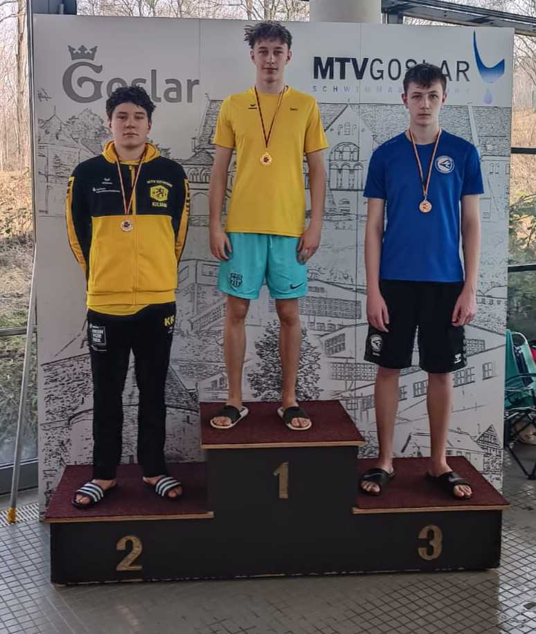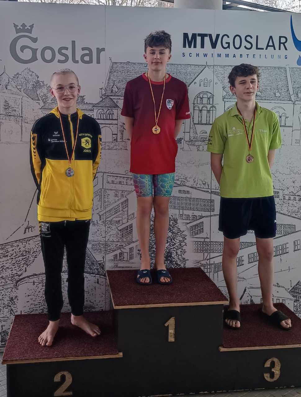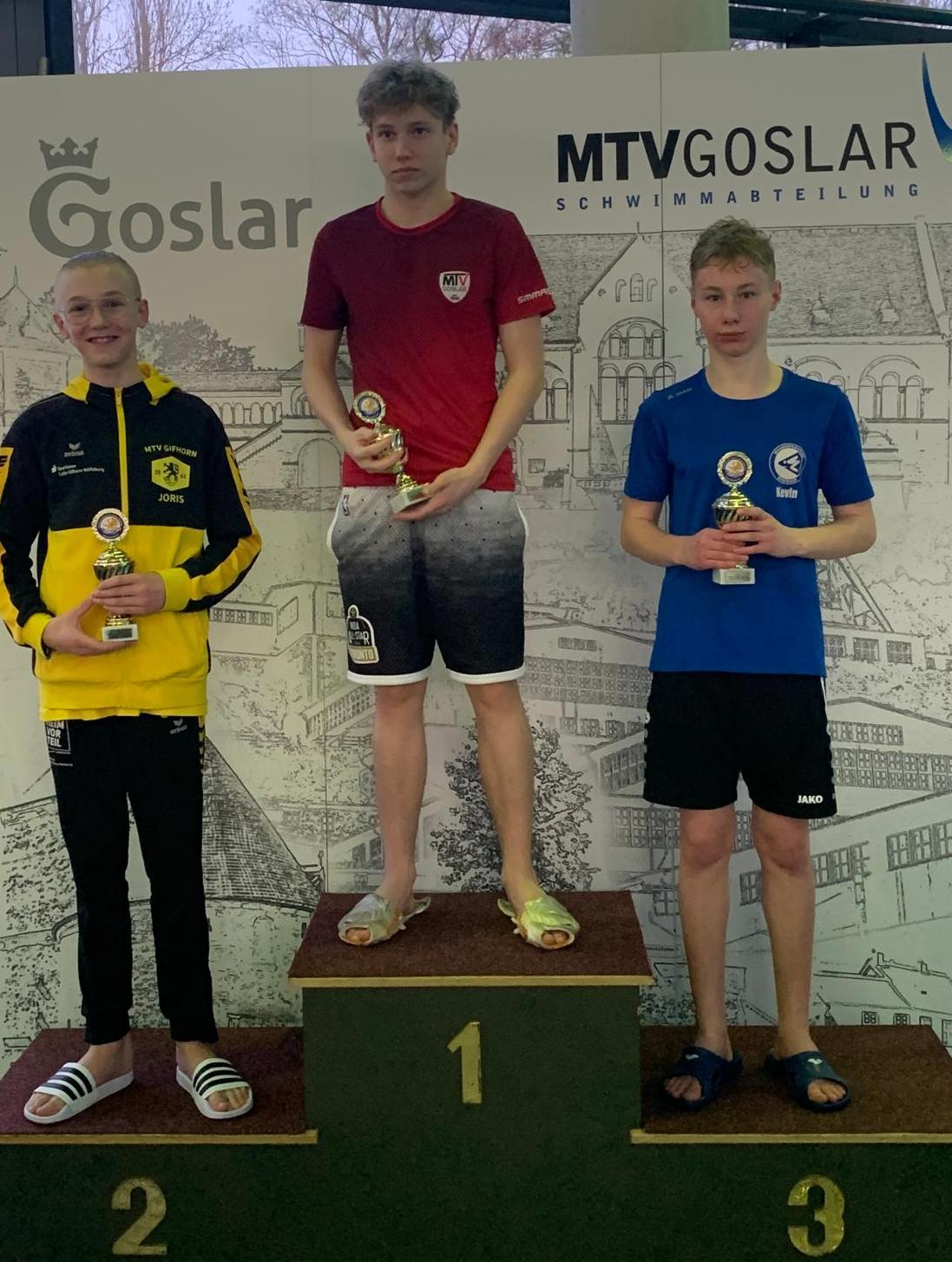 Kilian, Joris und Tom waren insgesamt mit 4 Goldmedaillen, 9 Silbermedaillen und drei Mal Bronze auch ausgesprochen erfolgreich. Kilian und Joris wurden zudem mit Pokalen für die Mehrkampfwertung belohnt! Gerrit und Lennox sammelten weitere Wettkampferfahrung und schwammen persönliche Bestzeiten.