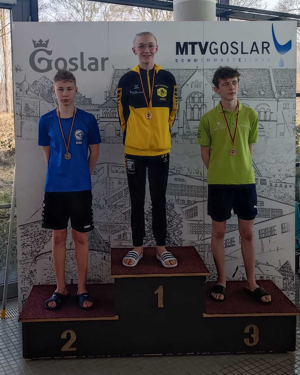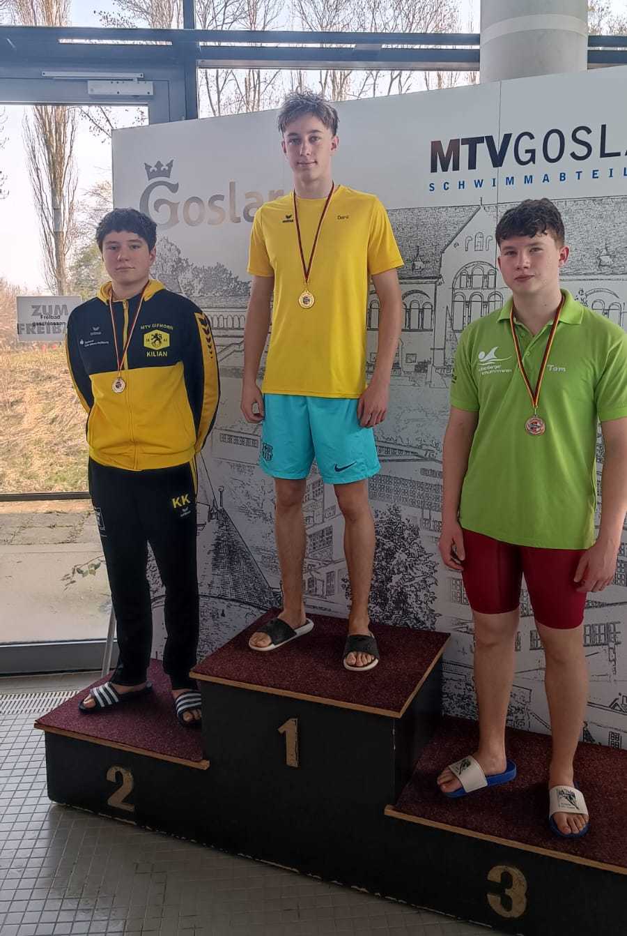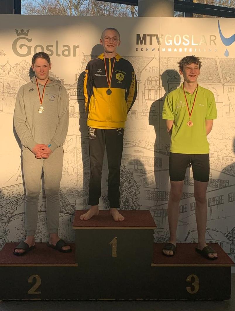 Kilian, Joris und Tom waren insgesamt mit 4 Goldmedaillen, 9 Silbermedaillen und drei Mal Bronze auch ausgesprochen erfolgreich. Kilian und Joris wurden zudem mit Pokalen für die Mehrkampfwertung belohnt! Gerrit und Lennox sammelten weitere Wettkampferfahrung und schwammen persönliche Bestzeiten.